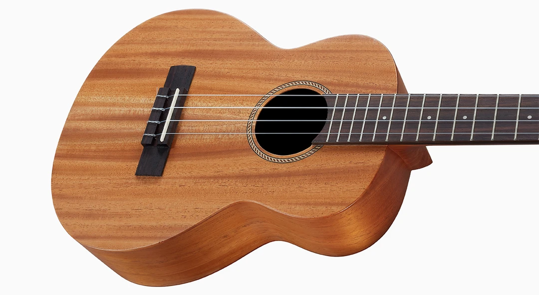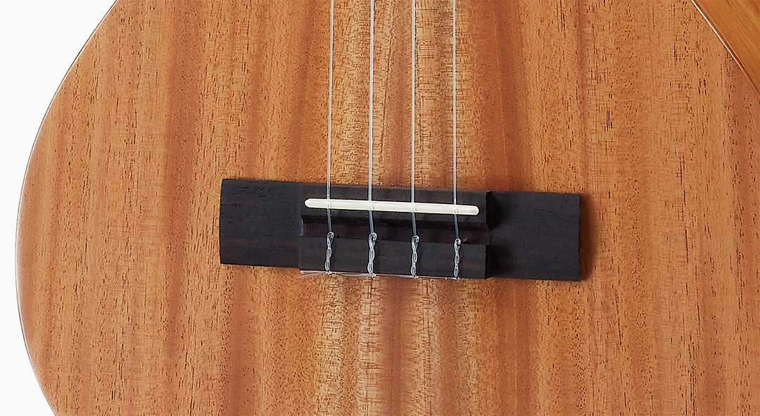 The rectangular rosewood bridge helps support the string tension. The Synthetic Bone for the nut which is very hard and articulate. This helps the strings to vibrate and to have a deep resonance.