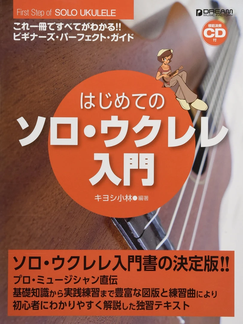 Ukulele Meister, Kiyoshi Kobayashi is one of the treasured teaching mystery! From primitive knowledge to various techniques, it is an introduction to easy to understand beginners. The style of playing a melody and accompaniment with a single ukulele is called “solo ukulele”. This book is a new style introductory music collection that incorporates the level up method from solo solo to chord solo. Tuning: High-G