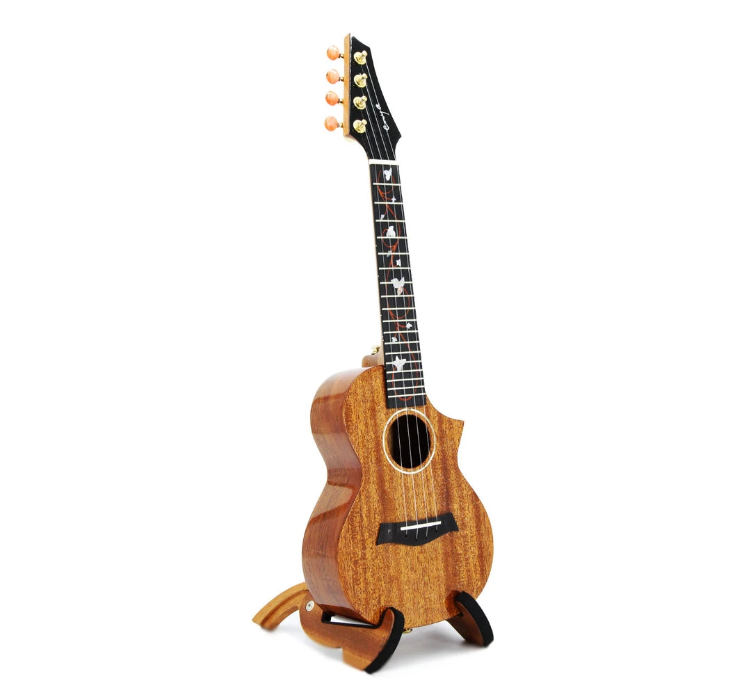 Ukulele stand shown in photos are for illustration purposes only, not included in the package. Ukulele photos featured are representations of the model, may not be the actual piece. Wood grains vary for different pieces.