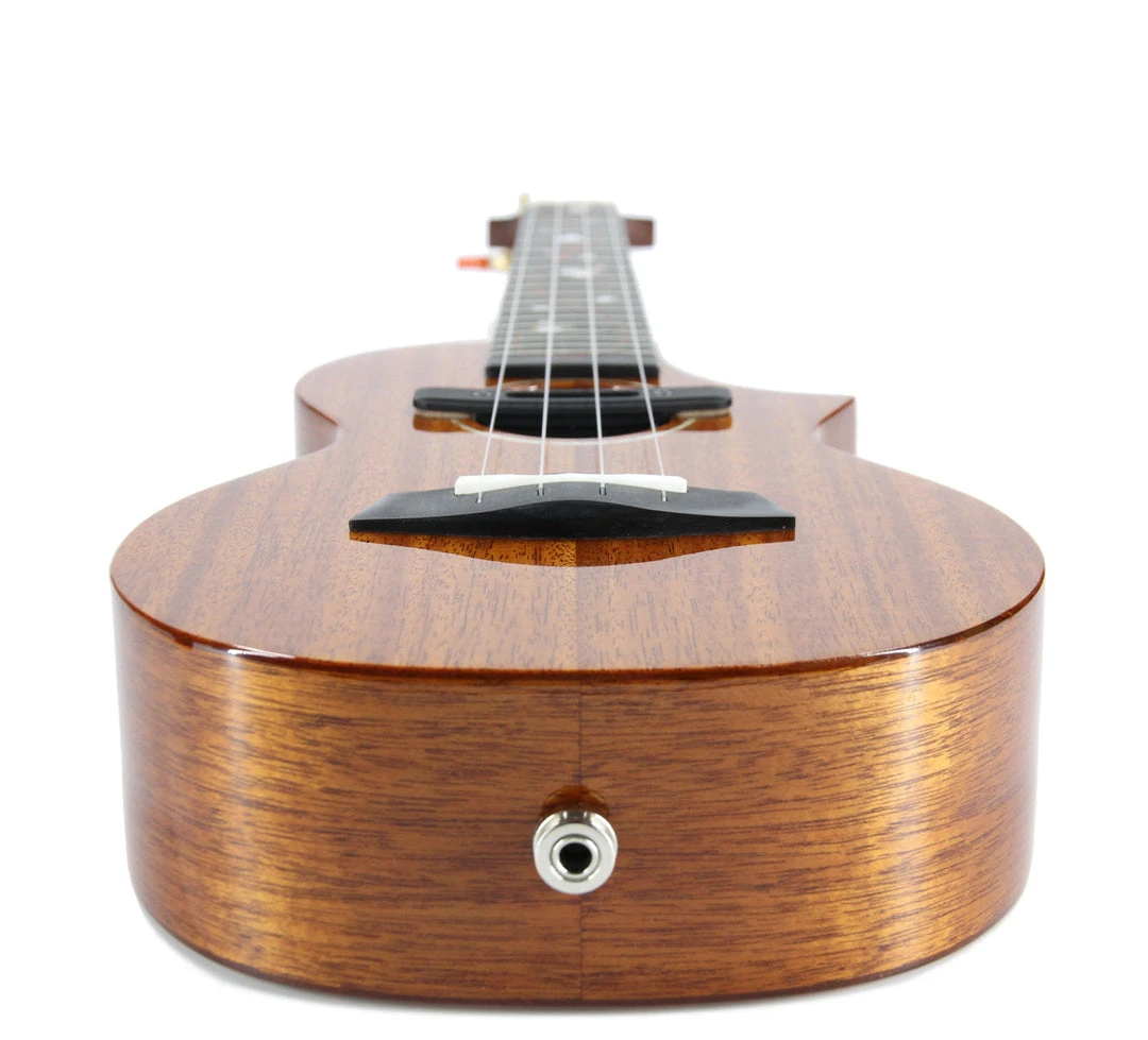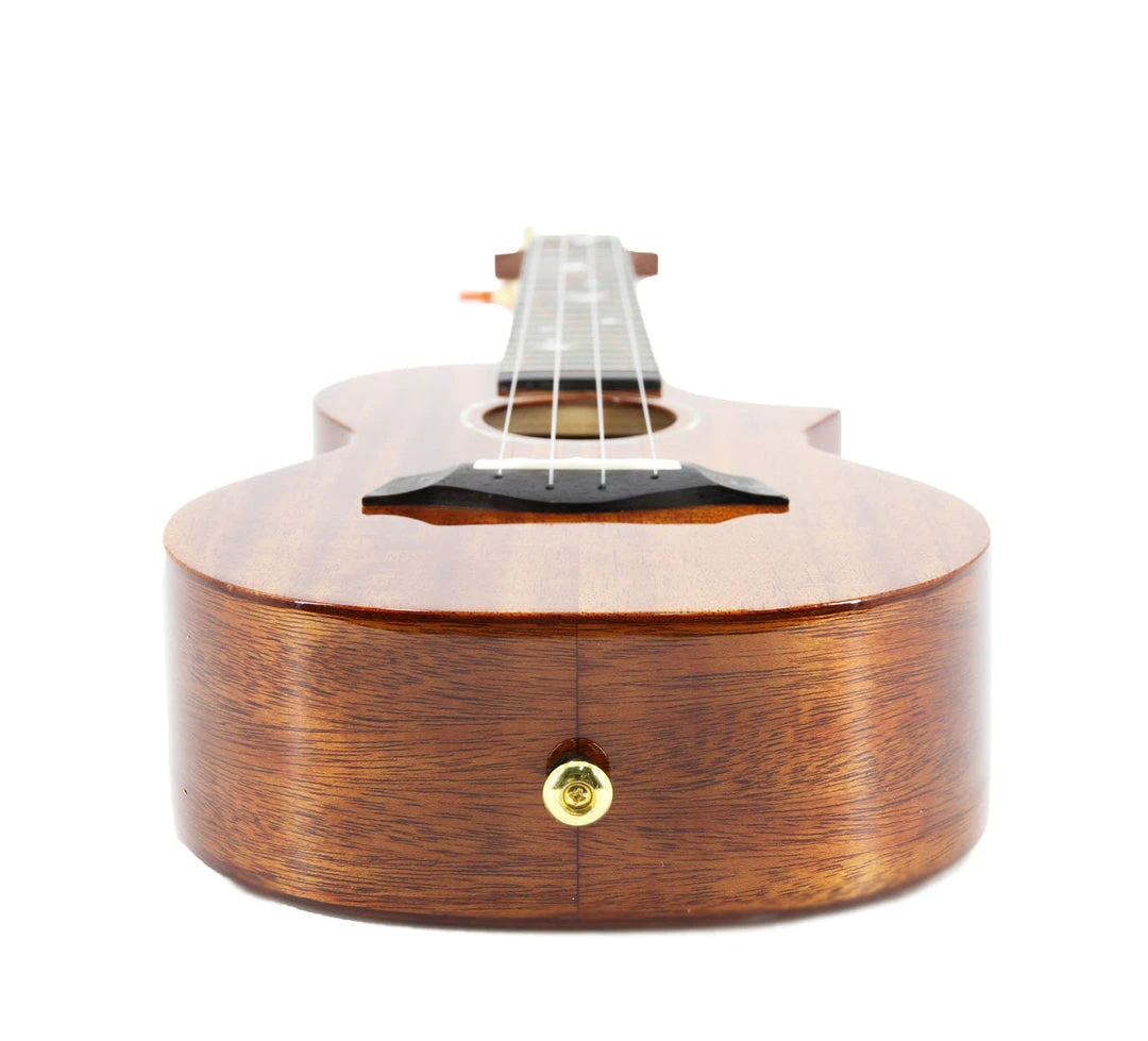 The same instrument as our traditional solid body Mahogany Ukulele, but in a stunning, hi-gloss wood finish. For discerning players, the choice of tonewood is important. Mahogany is a reddish-brown tropical hardwood known for being durable yet lightweight. Its well-balanced and moderate tone has made Mahogany among the most widely used tonewoods for Ukuleles. The M6 features solid Mahogany top, back, and sides and upgraded tuners that aid in Intonation and to help it stay in tune. The high gloss finish is wear and corrosion-resistant, with the added benefit of contributing to its clear, crisp tone. Great for a range of players from beginner, intermediate, or professional.