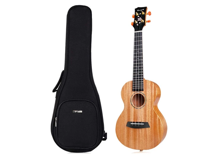 - Strung with Enya ukulele strings (concert) and D’Addario®EJ87T (tenor)