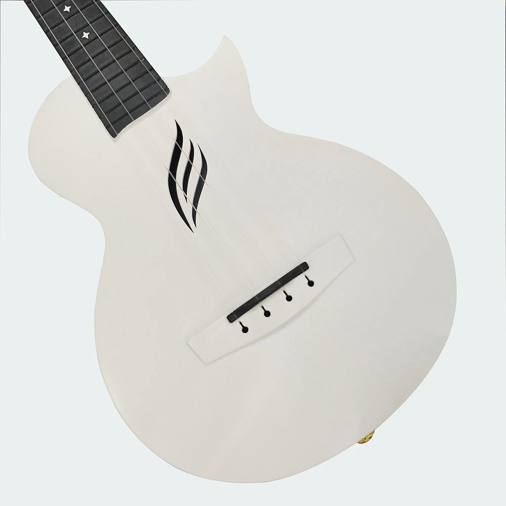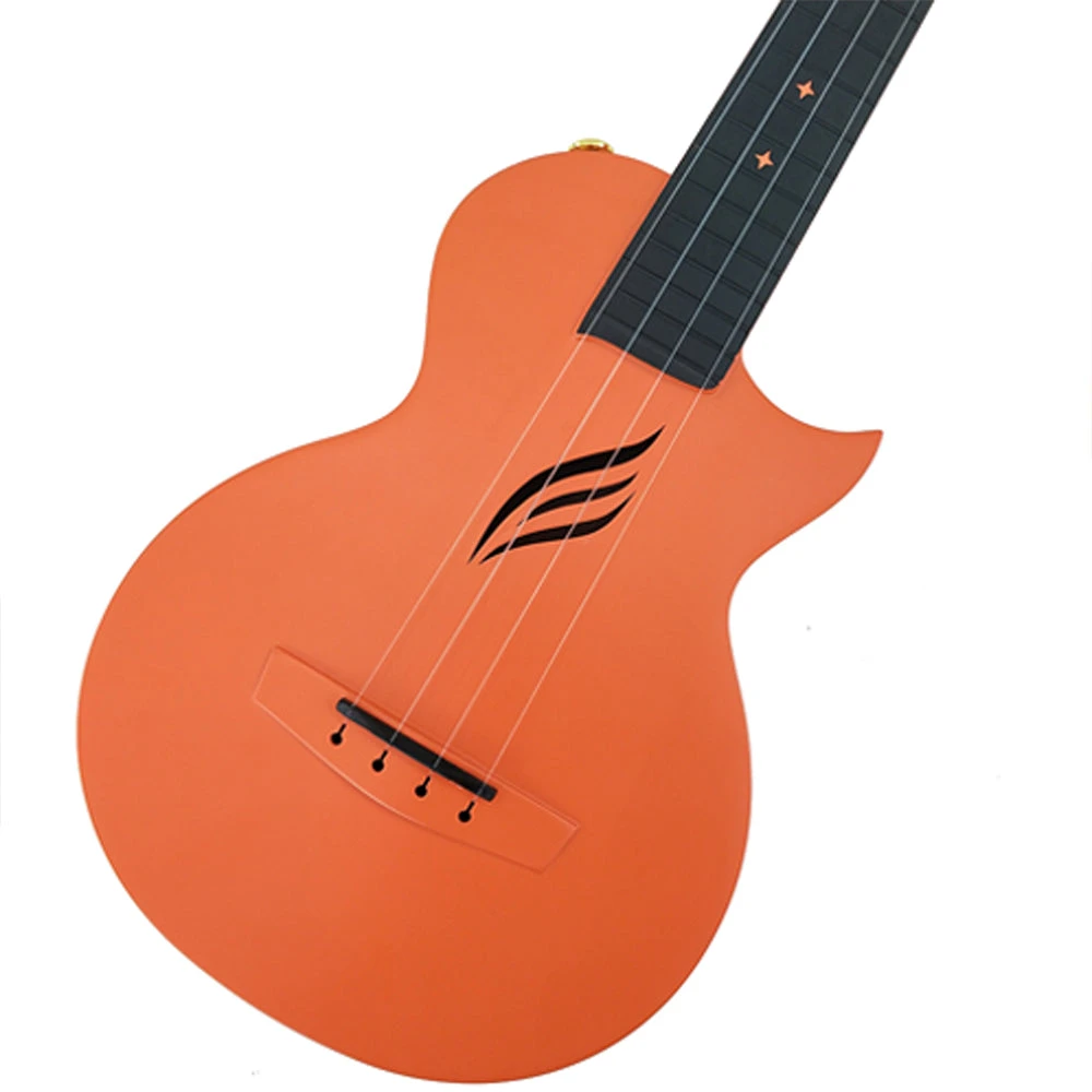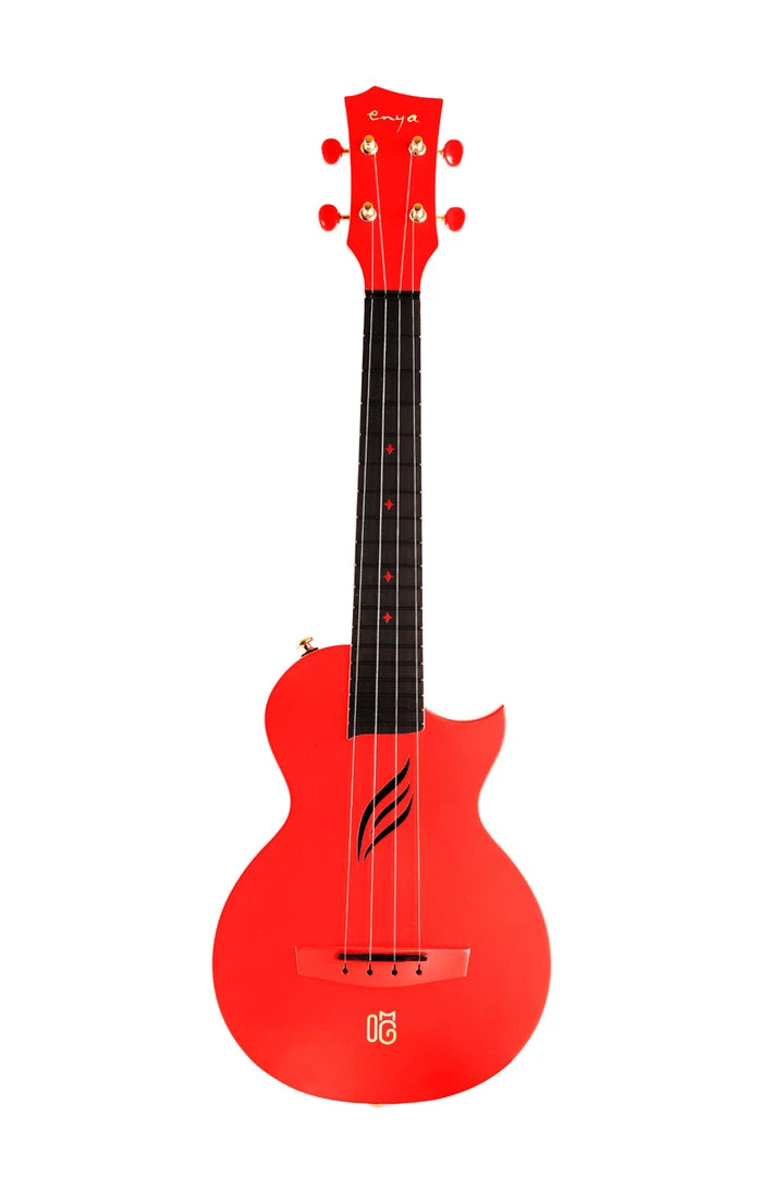 The unique Enya Nova has an eye-popping design and is made of carbon fiber composite. This polycarbonate material will give your ukulele a much brighter sound. The lightweight yet durable construction provides a greater resonance for such a surprisingly thin body! This incredibly resistant material is also waterproof and a breeze to clean. This ukulele is suitable for any level of player who seeks a one-of-a-kind style with the added sonic enhancements of bonded carbon atoms!