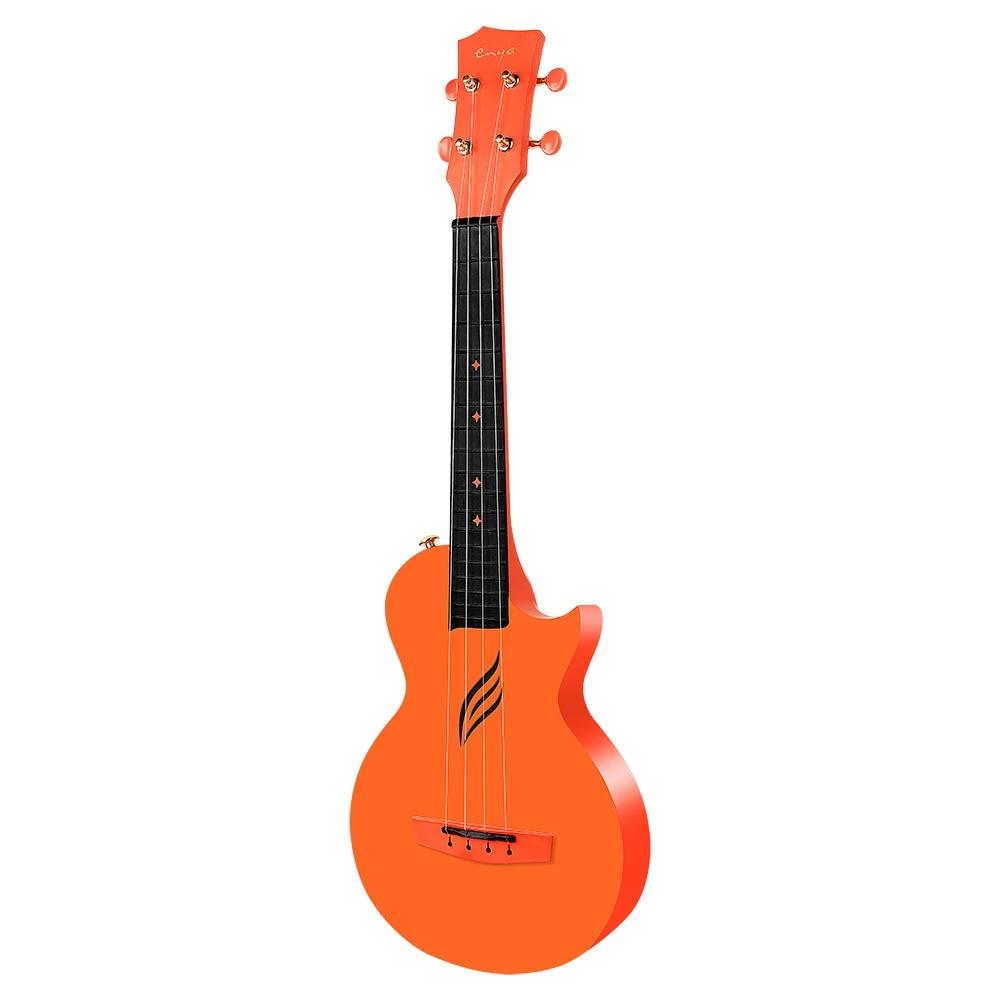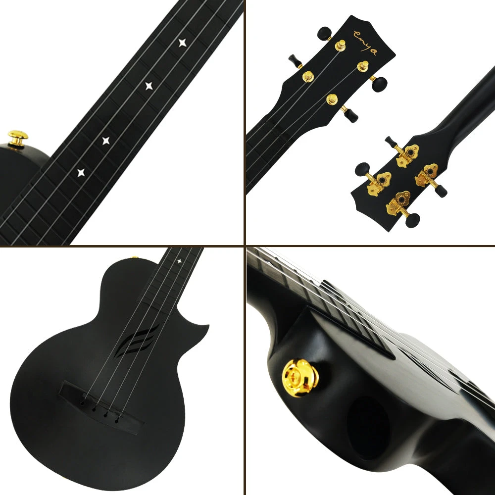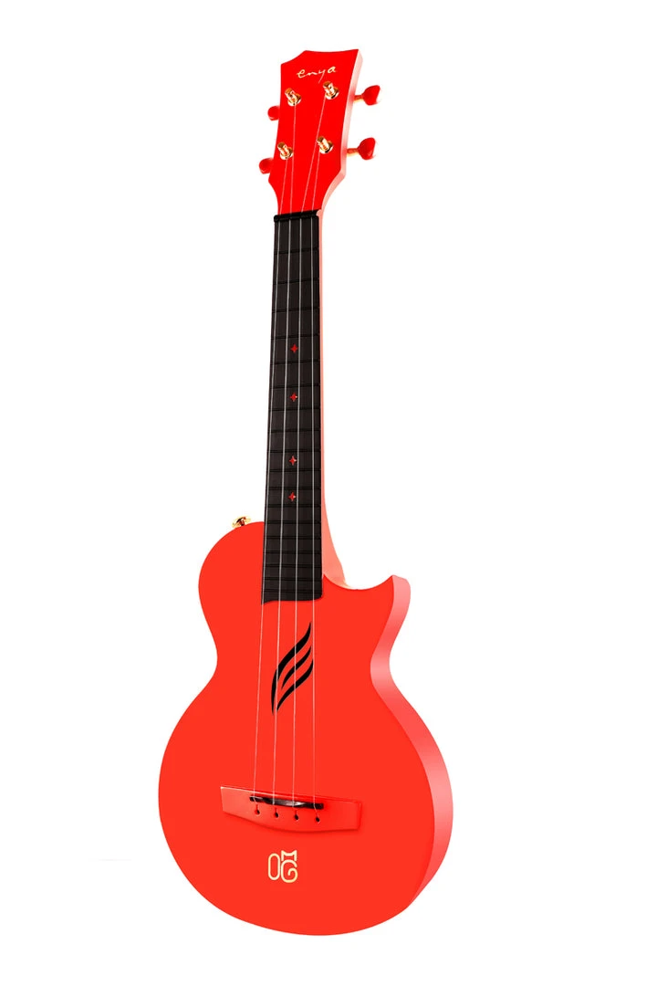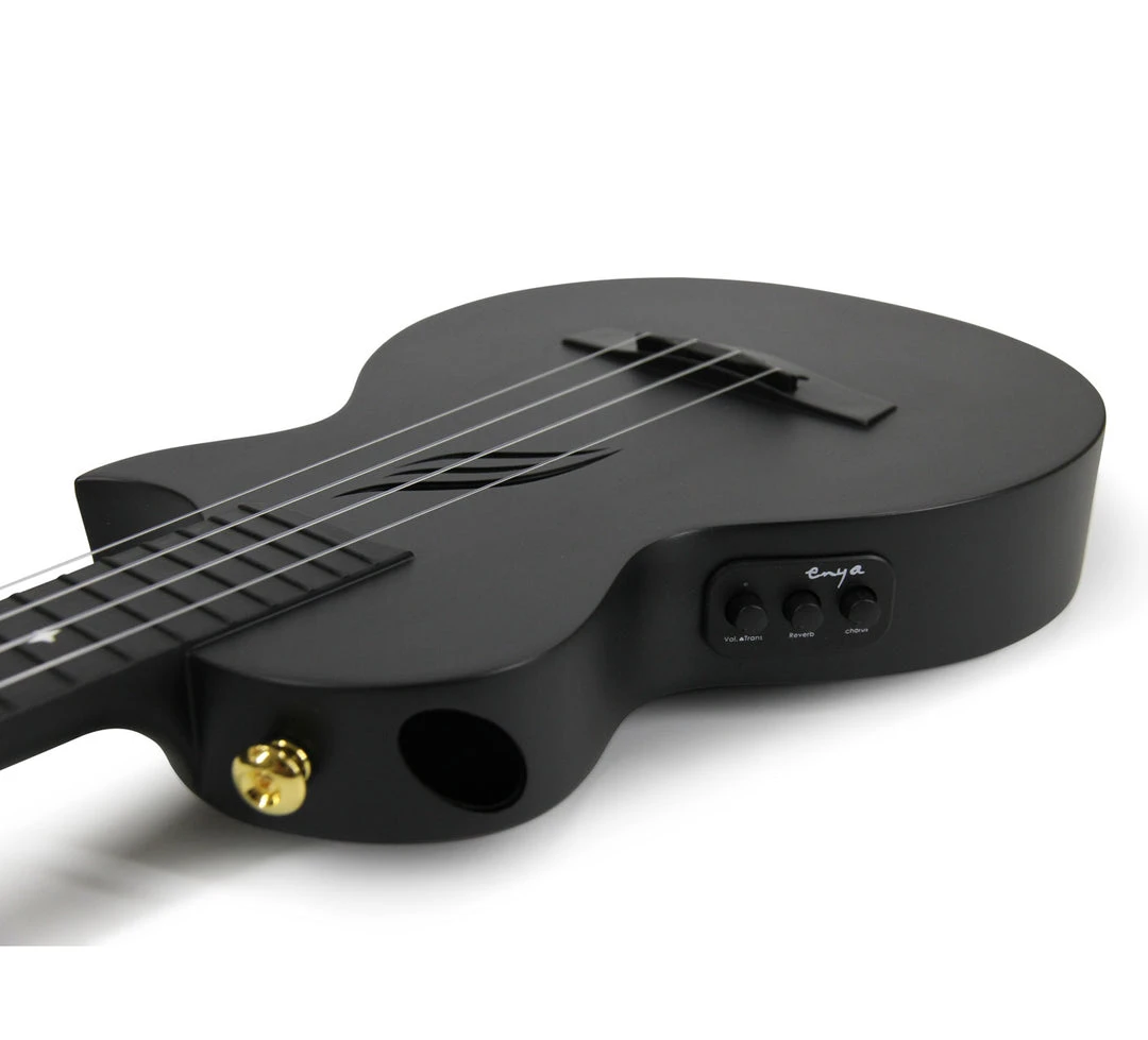 The unique Enya Nova has an eye-popping design and is made of carbon fiber composite. This polycarbonate material will give your ukulele a much brighter sound. The lightweight yet durable construction provides a greater resonance for such a surprisingly thin body! This incredibly resistant material is also waterproof and a breeze to clean. This ukulele is suitable for any level of player who seeks a one-of-a-kind style with the added sonic enhancements of bonded carbon atoms!