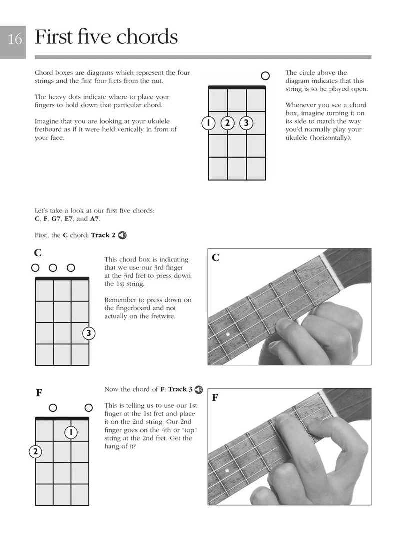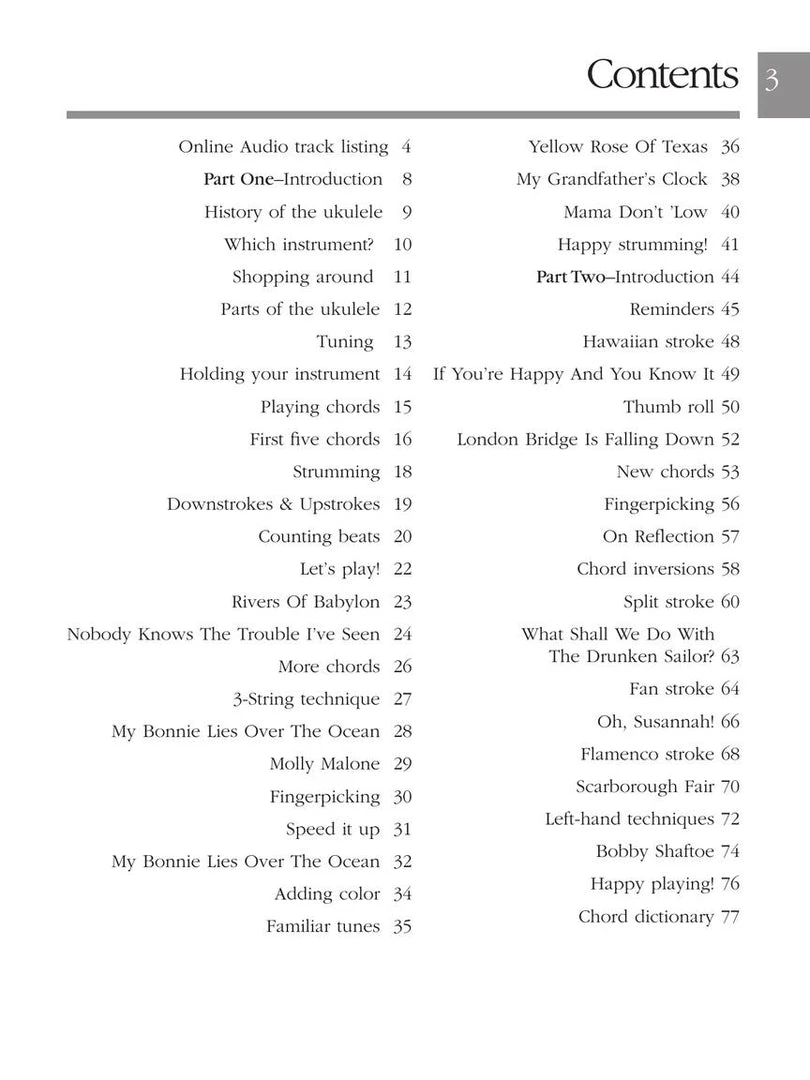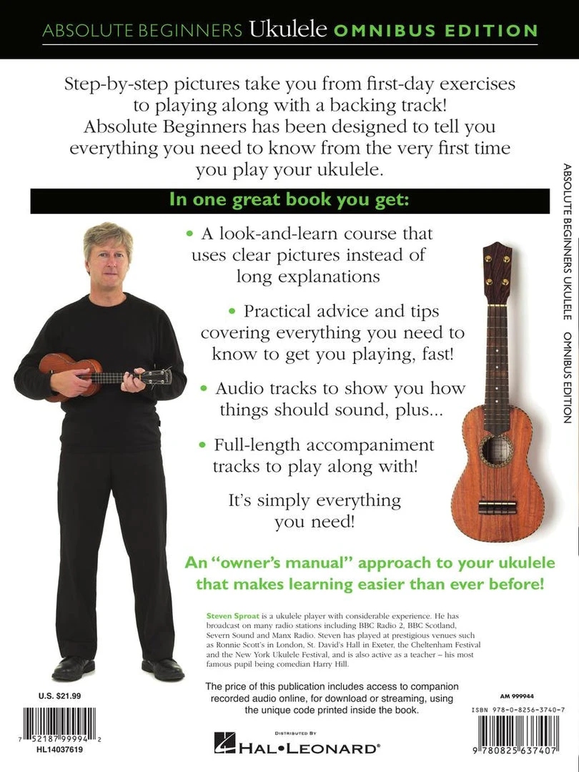 Step-by-step pictures take you from first-day exercises to playing along with a backing track! Absolute Beginners has been designed to tell you everything you need to know from the very first time you play your ukulele. In one great book you get: a look-and-learn course that uses clear pictures instead of long explanations; practical advice and tips covering everything you need to know to get you playing, fast!; CD audio tracks to show you how things should sound, plus full-length accompaniment tracks to play along with!; and more. It’s simply everything you need! An owner’s manual approach to your ukulele that makes learning easier than ever before!