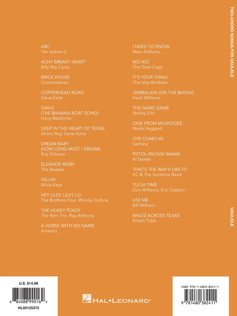 A great collection for beginners: if you can learn two chords, you can play two dozen favorite hits! Includes: ABC • Brick House • Day-O (The Banana Boat Song) • Eleanor Rigby • A Horse with No Name • Iko Iko • Jambalaya (On the Bayou) • Okie from Muskogee • Oye Como Va • Tulsa Time • and more!