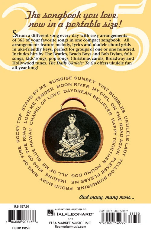 Compiled and arranged by Liz and Jim Beloff, The Daily Ukulele: To Go features 365 well-known songs with easy ukulele arrangements in one 5-1/2 inch x 8-1/2 inch compact songbook. Featuring the same songs and arrangements from the original full-size Daily Ukulele, this streamlined edition is smaller, lighter and perfect for those who want to travel with their favourite songbook. All arrangements feature melody, lyrics and ukulele chord grids in uke-friendly keys and never require a page turn in the middle of a song. Includes hits by the Beatles, Beach Boys and Bob Dylan, folk songs, kids’ songs, pop songs, Christmas carols, and Broadway and Hollywood tunes. A comb binding allows for easy “fold-flat” usage. The Daily Ukulele: To Go offers ukulele fun all year long!