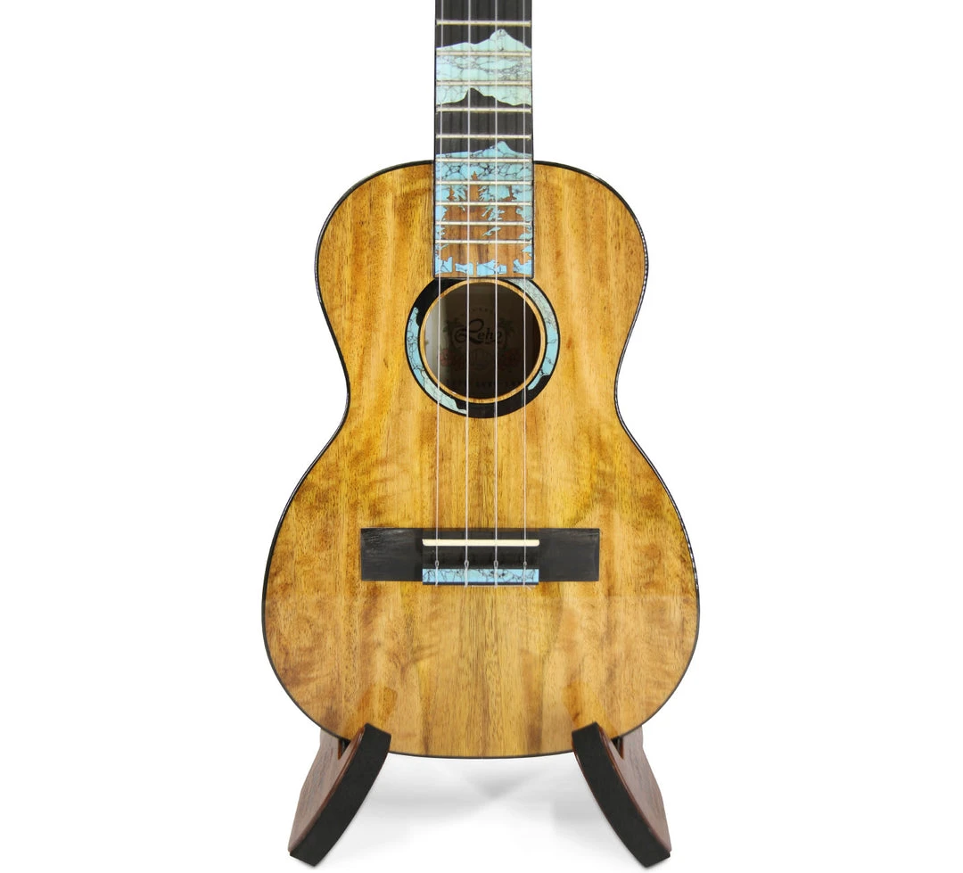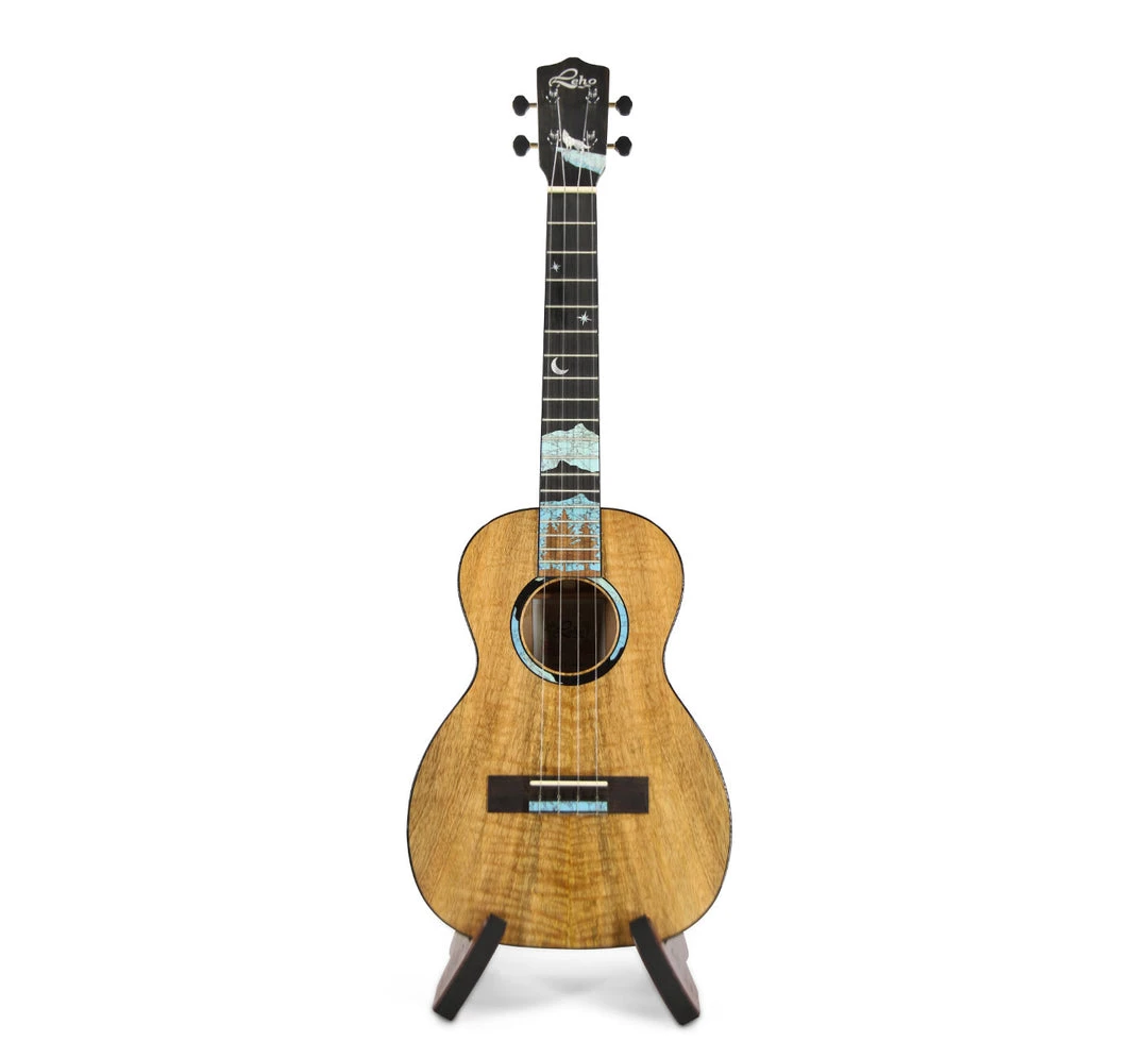 With a grain structure echoing koa reliefs, this all mango model fulfills the desires and strict play needs of professionals and collectors who truly know ukuleles. Enviable hints of lapiz lazul inlays in a “Great North” motif. Ebony fingerboard and bridge. Available in Concert and Tenor ; Worth premium strings-set and LEHO’s best #230 23mm padded Gig Bag with stitched, multicolor logo.