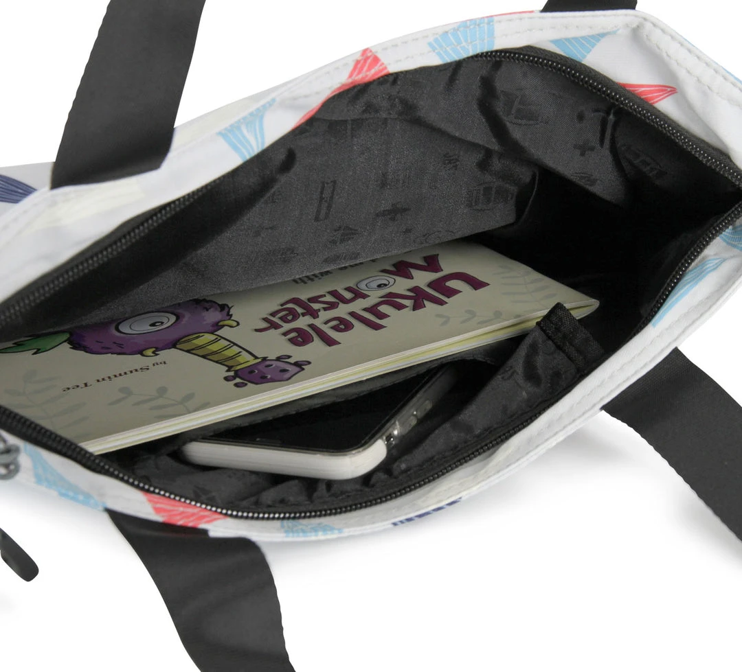 Lined interior with 1 pocket and top zip. Nylon double handles.