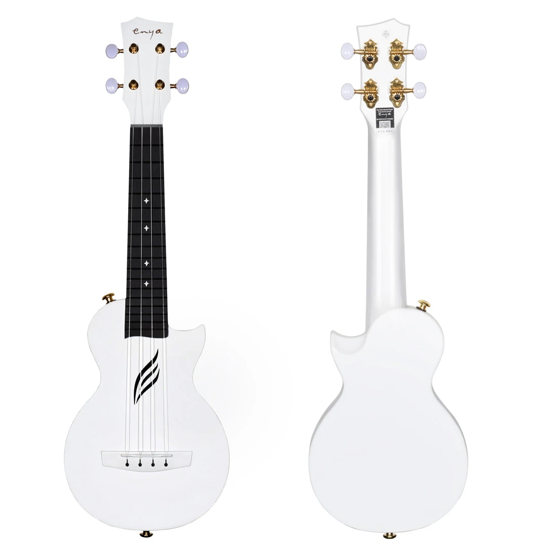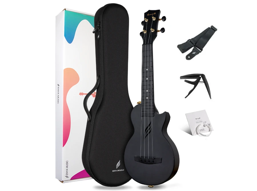 The unique Enya Nova has an eye-popping design and is made of carbon fiber composite. This polycarbonate material will give your ukulele a much brighter sound. The lightweight yet durable construction provides a greater resonance for such a surprisingly thin body! This incredibly resistant material is also waterproof and a breeze to clean. This ukulele is suitable for any level of player who seeks a one-of-a-kind style with the added sonic enhancements of bonded carbon atoms!