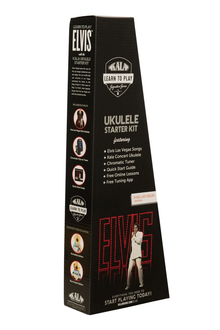 The newest addition to Kala’s Learn To Play Series teams the King of Rock ‘n’ Roll with the ukulele. Learn to play some of Elvis’ biggest hits spanning his career with these collectible ukes celebrating three of his most defining and recognizable eras. Collect All 3: Rockabilly; Blue Hawaii; Viva Las Vegas.
